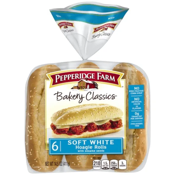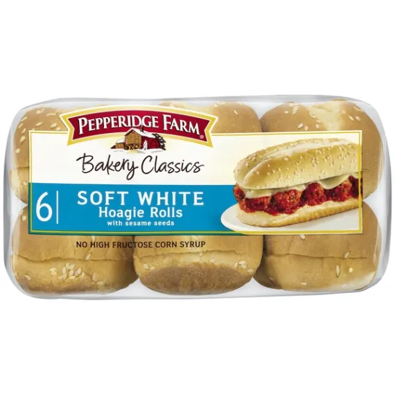 Pepperidge Farm Bakery Classics Soft White with Sesame Seeds Hoagie Rolls, 14.5 oz. Bag, 6-pack