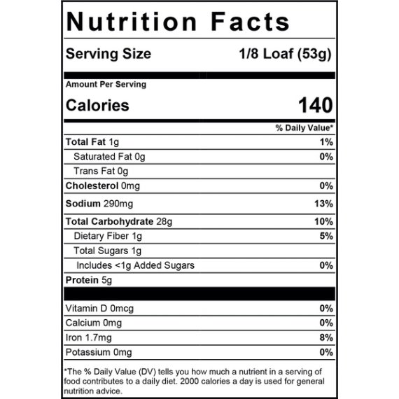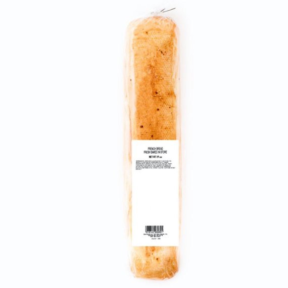 Details Ingredients Enriched Flour (Wheat Flour, Malted Barley Flour, Niacin, Ferroussulfate, Thiamin Mononitrate, Riboflavin, Folic Acid), Water Yeast. Contains 2% or Less of Salt, Sugar, Soybean Oil, Datem, Calcium Sulfate, Ascorbic Acid, Ammonium Sulfate, Enzymes, Vital Wheat Gluten. Show more Product features Freshness Guaranteed French Bread is the perfect loaf to pair with any meal. This wholesome loaf is baked fresh in store. It is great for making hand crafted sandwiches piled high with your favorite meats, veggies and cheeses. Use to make garlic bread and serve with your favorite Italian pasta. It comes in a clear bag twisted at the top intended to keep the product fresh until it is consumed. Bring the whole family together with the fresh from the bakery taste of Freshness Guaranteed French Bread. At The Bakery, we prepare your favorite items with pride and care in true Walmart passion, and each bite you take reflects our dedication and skill in baking Freshness Guaranteed French Bread: Baked fresh in store Great for sandwiches Perfect before meals Net weight 14 oz Net Quantity of Content 8 X 53 g