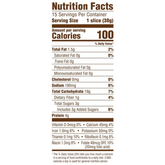 Sara Lee Artesano Golden Wheat Bakery Bread, Made with a Touch of Honey, Olive Oil & Sea Salt, 15 slices, 20 oz