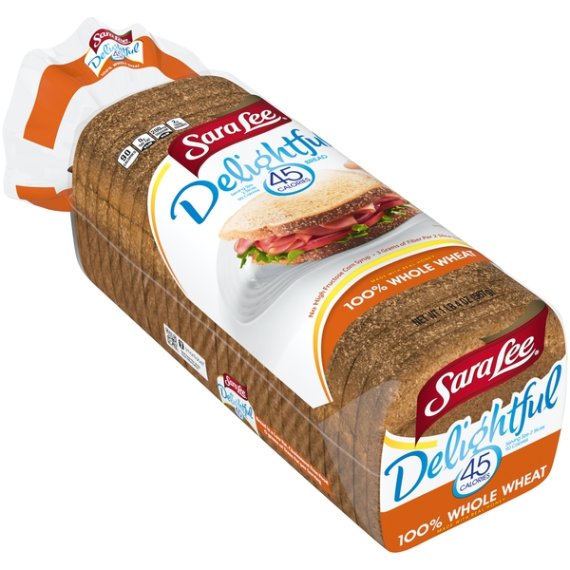 Details Ingredients Whole Wheat Flour, Water, Wheat Gluten, Modified Wheat Starch, Cellulose Fiber, Honey, Yeast, Sugar, Wheat Bran, Salt, Preservatives (Calcium Propionate, Sorbic Acid), Soybean Oil, Monoglycerides, Natural Flavor, Datem, Cellulose Gum, Honey Solids, Monocalcium Phosphate, Soy Lecithin, Calcium Sulfate, Reb A (Stevia Leaf Sweetener), Citric Acid, Grain Vinegar, Potassium Iodate. Show more Product features Get all of the benefits of whole wheat in every slice of Sara Lee Delightful 100% Whole Wheat Bread Made with Honey. With 45 calories per slice (serving size two slices for 90 calories), it packs all the whole grain bread nutrition, texture and fiber you want. Our Delightful 100% Whole Wheat Bread Made with Honey is made with 16 grams of whole grain per two slice serving. No High Fructose Corn Syrup No Artificial Colors or Flavors Made With Real Honey Special Features No trans fat Net Quantity of Content 13.0 X 2 slices