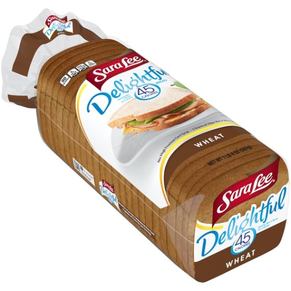 Details Ingredients Enriched Wheat Flour [Flour, Malted Barley Flour, Reduced Iron, Niacin, Thiamin Mononitrate (Vitamin B1), Riboflavin (Vitamin B2), Folic Acid], Water, Whole Wheat Flour, Wheat Gluten, Cellulose Fiber, Wheat Bran, Modified Wheat Starch, Sugar, Yeast, Honey, Salt, Preservatives (Calcium Propionate, Sorbic Acid), Soybean Oil, Natural Flavor, Monoglycerides, Datem, Monocalcium Phosphate, Honey Solids, Calcium Sulfate, Cellulose Gum, Soy Lecithin, Reb A (Stevia Leaf Sweetener), Citric Acid, Grain Vinegar, Potassium Iodate. Show more Product features Eating healthy without sacrificing taste comes easy when your sandwiches are made with Sara Lee Delightful Wheat Bread. With the delicious wheat bread flavor and texture they'll love, it's hard to believe that Delightful bread has 45 calories per slice (serving size two slices for 90 calories). So make their sandwiches just the way your family likes them make them Delightful. No High Fructose Corn Syrup No Artificial Colors or Flavors Excellent Source of Fiber Special Features No trans fat Net Quantity of Content 13.0 X 2 slices