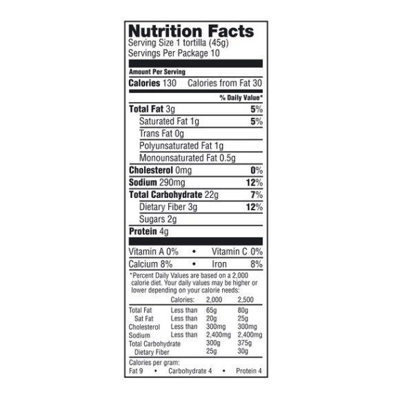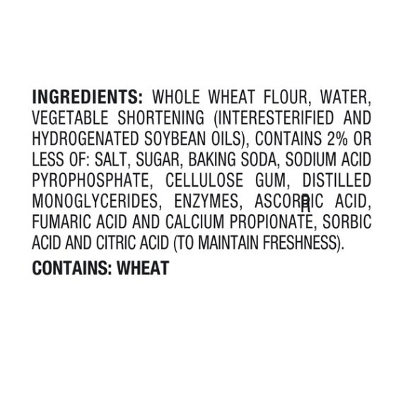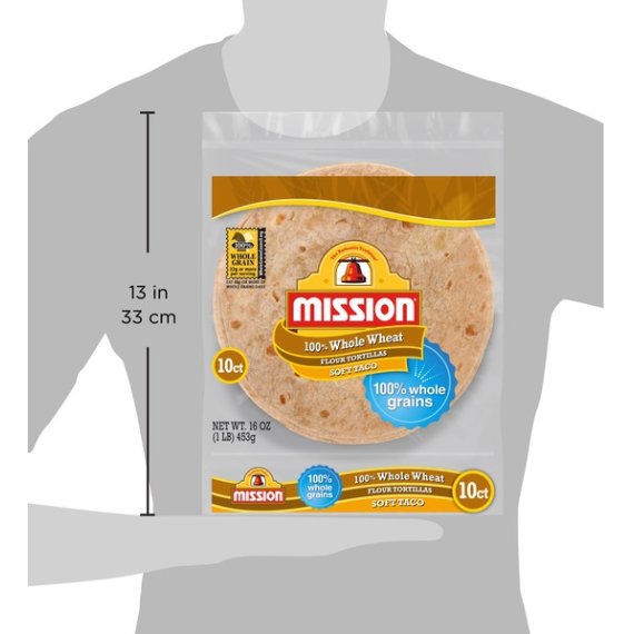 Details Ingredients Whole Wheat Flour, Water, Vegetable Shortening (Interesterified and Hydrogenated Soybean Oils), Contains 2% or less of: Salt, Sugar, Baking Soda, Sodium Acid Pyrophosphate, Cellulose Gum, Distilled Monoglycerides, Enzymes, Ascorbic Acid, Fumaric Acid, and Calcium Propionate, Sorbic Acid and Citric Acid (To maintain freshness) Show more Product features In addition to their great taste and soft texture, Mission Soft Taco Whole Wheat Tortillas deliver all of the extra benefits of whole grain. Our tortillas are made with 100% whole wheat, so they're naturally satisfying, a great source of whole grain, and high in fiber. And since our tortillas are also free of trans fat and cholesterol, they're a smart addition to any meal. Our whole wheat tortillas are versatile enough for any recipe you can imagine, but we love serving them with ancho chicken and avocado for a delicious twist on taco night. Includes one 10 ct package of Mission Soft Taco Whole Wheat Tortillas. One 10 count package of Mission Soft Taco Whole Wheat Tortillas Made from 100% whole wheat Good source of dietary fiber and whole grain No trans fat or cholesterol Delicious addition to all of your favorite recipes Special Features Wholesome blend of 100% whole grain Net Quantity of Content 10 X 1 tortilla (45g)