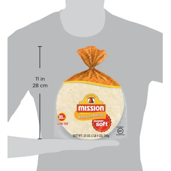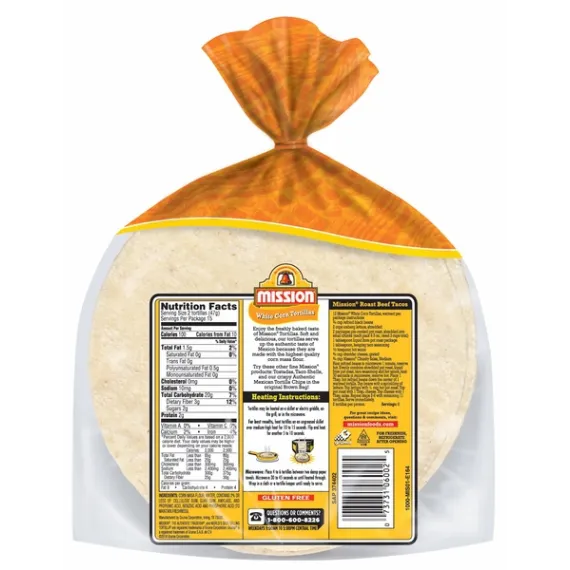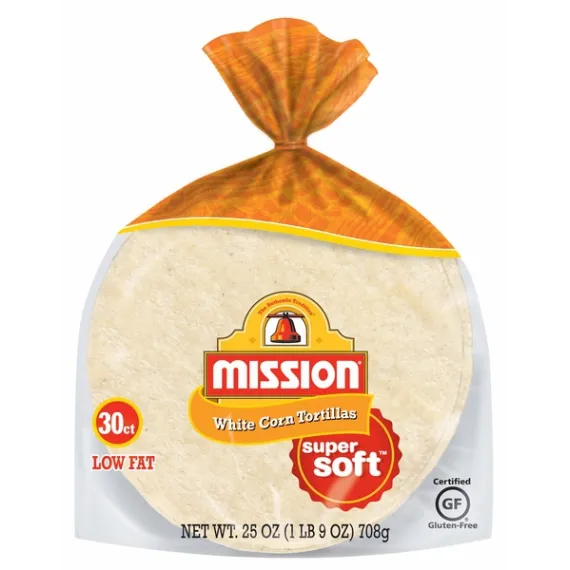 Details Ingredients GROUND CORN TREATED WITH LIME, WATER, CELLULOSE GUM, PROPIONIC ACID (TO PRESERVE FRESHNESS), BENZOIC ACID (TO PRESERVE FRESHNESS), PHOSPHORIC ACID (PRESERVATIVE), GUAR GUM, AMYLASE. Show more Product features Mission White Corn Tortillas are soft, and their authentic, fresh baked flavor complements almost any dish. Whether you're planning a taco night with friends or want to whip up a gooey casserole, our corn tortillas are versatile enough for all of your favorite recipes. You'll also feel good serving our corn tortillas to your friends and family because they're certified gluten free and don't contain any trans fat, lard, or cholesterol. The possibilities are endless when it comes to our corn tortillas, but we recommend trying them with pulled chicken and queso fresco for a crowd-pleasing weekend dinner. Includes one 30 ct package of Mission White Corn Tortillas. One 30 count package of Mission White Corn Tortillas Super soft texture Certified gluten free No trans fat, lard, or cholesterol Versatile addition to any recipe Special Features Good source of fiber, naturally low fat Net Quantity of Content 15.0 X 51 g