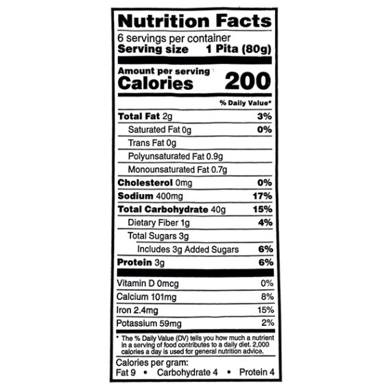 Details Ingredients Enriched Unbleached Flour (Wheat Flour, Malted Barley Flour, Niacin, Ferrous Sulfate, Thiamine Mononitrate, Riboflavin, Folic Acid), Water, Cane Sugar, Yeast, Wheat Gluten, Contains 2% or less of each of the following: Soybean Oil, Salt, Calcium Propionate (a preservative), Baking Powder (Sodium Acid Pyrophosphate, Sodium Bicarbonate, Cornstarch, Monocalcium Phosphate), Sugar Cane Fiber, Enzyme (plant based), Citric Acid (a preservative) Show more Product features Sam's Choice White Greek Style Pita is an authentic flatbread that has an irresistibly soft and fluffy texture. Use this popular Greek style bread to make a hand crafted gyros topped with lettuce, tomato and onion. Serve it as a delicious side with a plate of chicken tikka masala or a hot cup of creamy lentil soup. They are great for health conscious individuals as they have no trans-fat or cholesterol, and have 3 grams of protein per serving. They are also a good low calorie source of calcium and iron. Enjoy authentic Greek style flavors with the great taste of Sam's Choice White Greek Style Pita. Named after our iconic founder, Walmart's Sam's Choice brand provides families with premium, high-quality food and grocery options with the best value. With our wide range of products spanning grocery, packaged food, pre-packaged deli, dairy and frozen food, we offer you a tailored assortment that is both innovative and enticing. Our authentic products are inspired by our proud heritage and are trusted today by the millions of customers using them across the nation. Sam’s Choice White Greek Style Pita, 16.8oz, 6 ct: Authentic Greek style flatbread 3 grams of protein per serving 6 servings per container Net weight 16.8 oz Net Quantity of Content 6 X 1 Pita (80g)