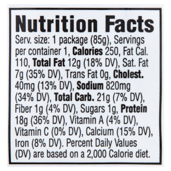 * Percent Daily Values are based on a 2,000 calorie diet. Your daily values may be higher or lower depending on your calorie needs.