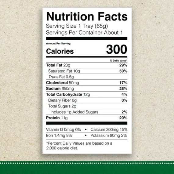 * Percent Daily Values are based on a 2,000 calorie diet. Your daily values may be higher or lower depending on your calorie needs.
