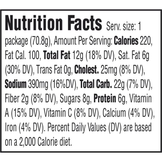 * Percent Daily Values are based on a 2,000 calorie diet. Your daily values may be higher or lower depending on your calorie needs.