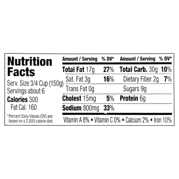 * Percent Daily Values are based on a 2,000 calorie diet. Your daily values may be higher or lower depending on your calorie needs.