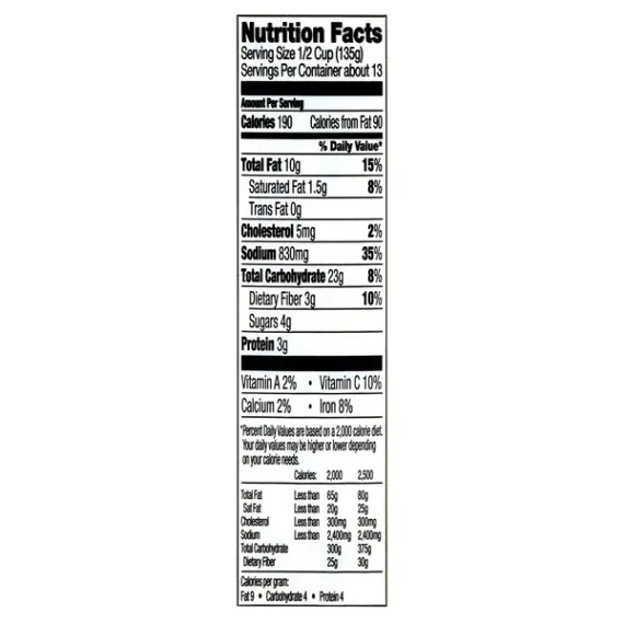 * Percent Daily Values are based on a 2,000 calorie diet. Your daily values may be higher or lower depending on your calorie needs.