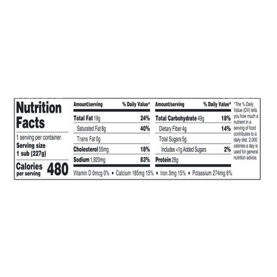 Details Ingredients ROLL (BLEACHED ENRICHED BROMATED FLOUR [BLEACHED WHEAT FLOUR, MALTED BARLEY FLOUR, NIACIN, REDUCED IRON, POTASSIUM BROMATE, THIAMINE MONONITRATE, RIBOFLAVIN, FOLIC ACID], WATER, VEGETABLE OIL BLEND [CANOLA OIL AND EXTRA VIRGIN OLIVE OIL], DOUGH IMPROVER BLEND [WATER, MONO- AND DIGLYCERIDES, DATEM, GUAR GUM, SORBIC ACID {PRESERVATIVE}, NATURAL FLAVORING, WHEAT FLOUR, ENZYMES], DOUGH IMPROVER BLEND [GUM ARABIC, WHEAT FLOUR, MONO- AND DIGLYCERIDES, SALT, CONTAINS 2% OR LESS OF THE FOLLOWING: SOYBEAN OIL, CELLULOSE GUM, GUAR GUM, ENZYMES], SALT, DEXTROSE, YEAST, DOUGH IMPROVER BLEND [WHEAT FLOUR, MONO- AND DIGLYCERIDES, DATEM, SOY FLOUR, CONTAINS 2% OR LESS OF THE FOLLOWING: SOYBEAN OIL, ASCORBIC ACID {PRESERVATIVE}, ENZYMES, L-CYSTEINE], ENRICHED WHEAT FLOUR [WHEAT FLOUR, NIACIN, REDUCED IRON, THIAMINE MONONITRATE, RIBOFLAVIN, FOLIC ACID], ENZYMES), COOKED CHICKEN BREAST WITH RIB MEAT (CHICKEN BREAST WITH RIB MEAT, WATER, CONTAINS 2% OR LESS OF SEASONING [SALT, SUGAR, NATURAL FLAVORING], ISOLATED SOY PROTEIN, SODIUM PHOSPHATES, SALT, DEXTROSE), PASTEURIZED PREPARED CHEESE PRODUCT (NONFAT MILK, AMERICAN CHEESE [MILK, CHEESE CULTURES, SALT, ENZYMES], WHEY, PALM OIL, CASEIN, FOOD STARCH-MODIFIED, NATURAL FLAVOR, MALTODEXTRIN, SODIUM CITRATE, SALT, LACTIC ACID, SORBIC ACID [PRESERVATIVE], SOY LECITHIN), SAUCE (DISTILLED VINEGAR, AGED CAYENNE RED PEPPERS, SALT, WATER, FOOD STARCH-MODIFIED, CANOLA OIL, PAPRIKA, CARROT FIBER, XANTHAN GUM, NATURAL BUTTER TYPE FLAVOR, GARLIC POWDER). Show more Product features Bite into a mouthful of flavor with this Marketside Buffalo-Style White Meat Chicken Sub, packed with all your favorite fillings including white meat chicken, cheese, and a tangy buffalo sauce on a soft artisan roll. This delicious Buffalo-style chicken sub is perfect for a quick and easy meal at home, at work or the office, or on the go. Add a side of crispy potato chips and a hot cup of your favorite soup for a hearty meal. Ready to eat in as little as a minute and a half, this sandwich has 28 grams of protein per serving to satisfy your hunger. Treat yourself to a delicious Marketside Buffalo-Style White Meat Chicken Sub. Fresh ideas and quality ingredients, that's how Marketside brings the best foods to your table. We are committed to deliver freshness that you can taste and see. Marketside offers the best in fresh food, guaranteed by Walmart, working in partnership with farmers, bakers and chefs for the highest quality, authentic ingredients and favorite recipes. Marketside Buffalo-Style White Meat Chicken Sub, 8 oz: Heat and eat Ready in 1.5-2 minutes Quick and easy grab-and-go meal Pair with your favorite chips, veggies, or soup 28 grams of protein per serving Net Quantity of Content 1 X 227 g