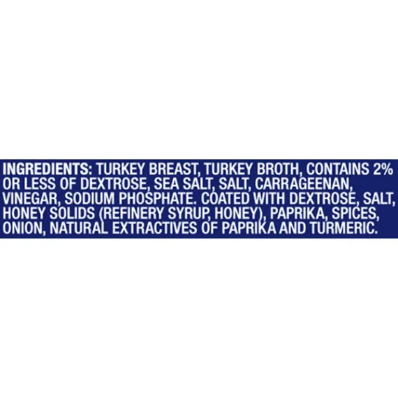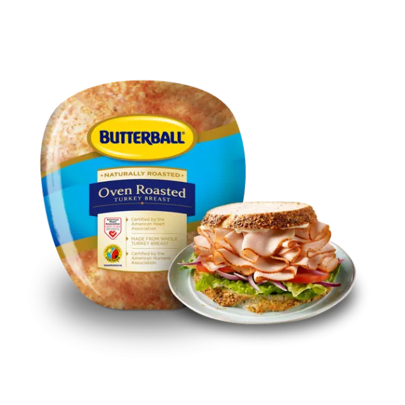 Details Ingredients Turkey Breast, Turkey Broth, contains 2% or less of Dextrose, Modified Food Starch, Salt, Vinegar, Sodium Phosphate. Product features Rich in color and flavor, our Oven Roasted Turkey Breast is as delicious as it looks. butterball Oven Roasted Turkey breast Made from whole turkey breast. Made with ZERO Nitrates or Nitrites. No added Hormones or Steroids. American Humane Certified. Gluten free. Allergy Notice Our stores may use some of the following ingredients: peanuts, eggs, soy, tree nuts, wheat, dairy products, fish, and/or shellfish. Even if these are not listed on the ingredient label, please be aware that all products may have come in contact with these ingredients.