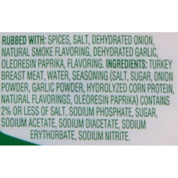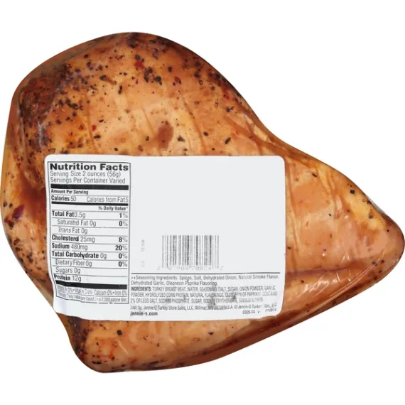 Details Ingredients Rubbed with: Spices, Salt, Dehydrated Onion, Natural Smoke Flavoring, Dehydrated Garlic, Oleoresin of Paprika, Flavoring. Ingredients: Turkey Breast Meat, Water, Seasoning (Salt, Sugar, Onion Powder, Garlic Powder, Hydrolyzed Corn Protein, Natural Flavorings, Oleoresin Paprika), Contains 2% Or Less Salt, Sodium Phosphate, Sugar, Sodium Acetate, Sodium Diacetate, Sodium Erythorbate, Sodium Nitrite. Show more Product features The city of New Orleans meets deli turkey! JENNIE-O® Cajun Style Turkey Breast is seasoned turkey with creole rub and other pre-rubbed spices to give your sandwich or a salad a little more bite. Slice it up for lunch filled with flavor and nutrition. Gluten Free Premium Seasoned Allergy Notice Our stores may use some of the following ingredients: peanuts, eggs, soy, tree nuts, wheat, dairy products, fish, and/or shellfish. Even if these are not listed on the ingredient label, please be aware that all products may have come in contact with these ingredients.