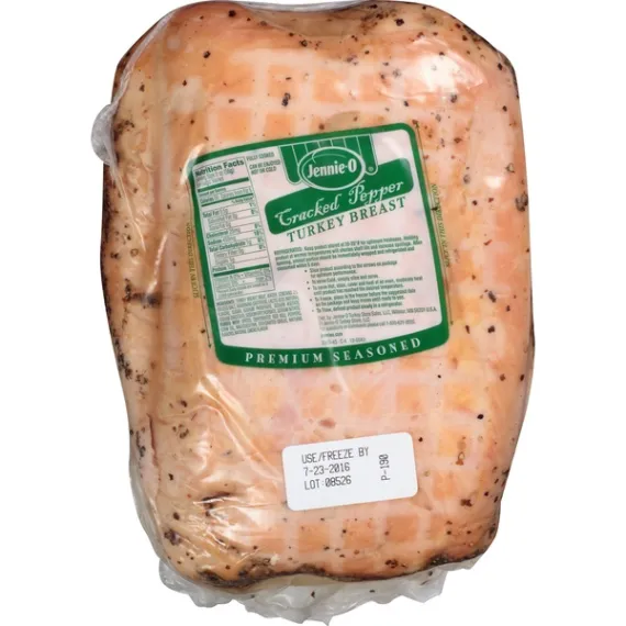 Details Product features JENNIE-O® Cracked Pepper Turkey Breast comes with flavors that pump up the pow in your salad or sandwich! With delicious cracked pepper seasoned turkey, you don't need to add any other rubs, dressings or condiments. The flavor is all there, and it's all you need. Coated with Cracked Peppercorns Gluten Free Fully Cooked Premium Quality Premium Seasoned Allergy Notice Our stores may use some of the following ingredients: peanuts, eggs, soy, tree nuts, wheat, dairy products, fish, and/or shellfish. Even if these are not listed on the ingredient label, please be aware that all products may have come in contact with these ingredients.