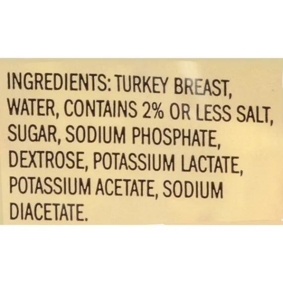 Details Ingredients Turkey Breast, Water, Contains 2% or Less: Salt, Sugar, Sodium Phosphate, Dextrose, Potassium Lactate, Potassium Acetate, Sodium Diacetate. Product features Premium deli turkey breast Prima Della Hickory Smoked Turkey breast Allergy Notice Our stores may use some of the following ingredients: peanuts, eggs, soy, tree nuts, wheat, dairy products, fish, and/or shellfish. Even if these are not listed on the ingredient label, please be aware that all products may have come in contact with these ingredients.