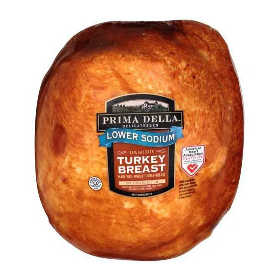 Details Ingredients Turkey Breast Meat, Turkey Broth, Contains 2% Or Less Salt, Sugar, Sodium Phosphate, Sodium Acetate, Sodium Diacetate, Dextrose, Flavoring, Vegetable Oil. Show more Product features Prima Della Lower Sodium Turkey Breast: 98% fat free 30% reduced sodium Made with whole turkey breast American Heart Association Certified Inspected for wholesomeness by U.S. Department of Agriculture Allergy Notice Our stores may use some of the following ingredients: peanuts, eggs, soy, tree nuts, wheat, dairy products, fish, and/or shellfish. Even if these are not listed on the ingredient label, please be aware that all products may have come in contact with these ingredients.
