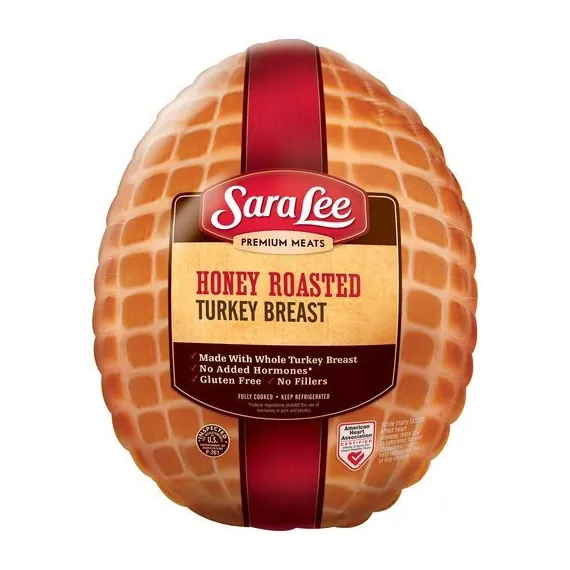 Details Ingredients Turkey Breast, Turkey Broth, Honey, Contains 2% Or Less of: Dextrose, Salt, Sodium Phosphate, Potassium, Chloride, Smoke Flavoring, Ascorbic Acid, Citric Acid, Sugar, Sodium Nitrite, Disodium Guanylate and Disodium Inosinate, Fructose, Lactic Acid, Calcium Lactate, Succinic Acid, Flavorings. Show more Product features Sara Lee Lower Sodium Honey Roasted Whole Turkey Breast: Made with whole turkey breast 25% less sodium than USDA data for oven roasted turkey breast (sodium has been reduced from 570mg to 430mg per 2-ounce serving) Smoke flavoring added No fillers Fully cooked No added hormones Gluten free Allergy Notice Our stores may use some of the following ingredients: peanuts, eggs, soy, tree nuts, wheat, dairy products, fish, and/or shellfish. Even if these are not listed on the ingredient label, please be aware that all products may have come in contact with these ingredients.