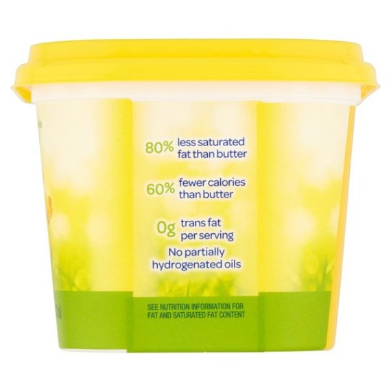 Details Ingredients Purified Water, Soybean Oil, Palm Kernel and Palm Oil, Salt, Lecithin (Soy), Mono and Diglycerides, Vinegar, Natural Flavors, Vitamin A Palmitate, Beta Carotene (Color). Show more Product features Vegetable Oil Spread, Light, Tub 15 OZ Simple ingredients. No artificial preservatives. Unbelievable taste! 40 calories per 1 tbsp. 60% less fat & calories than butter (See nutrition information for fat and saturated fat content). Gluten-free. 0 g trans fat per serving. No partially hydrogenated oils. Per Serving: ICBINB! Light: 40 calories; 4 g fat; 1 g sat fat. Butter: 100 calories; 11 g fat; 7 g sat fat. Want to know more about our ingredient journey? Visit us at icantbelieveitsnotbutter.com. Go ahead, enjoy! Unbelievable taste from real, simple ingredients. 80% less saturated fat than butter. 60% fewer calories than butter. 0 g trans fat per serving. No partially hydrogenated oils. See nutrition information for fat and saturated fat content. Questions or comments? Call 1-800-634-0302. Visit us at icantbelieveitsnotbutter.com. Keep refrigerated. For best quality do not freeze. Best if used by date in lid. 15 oz (425 g) Englewood Cliffs, NJ 07632 800-634-0302 Unilever Vegetable Oil Spread, 30%, Light Simple ingredients. No artificial preservatives. Unbelievable taste! 40 calories per 1 tbsp. 60% less fat & calories than butter (See nutrition information for fat and saturated fat content). Gluten-free. 0 g trans fat per serving. No partially hydrogenated oils. Per Serving: ICBINB! Light: 40 calories; 4 g fat; 1 g sat fat. Butter: 100 calories; 11 g fat; 7 g sat fat. Want to know more about our ingredient journey? Visit us at icantbelieveitsnotbutter.com. Go ahead, enjoy! Unbelievable taste from real, simple ingredients. 80% less saturated fat than butter. 60% fewer calories than butter. 0 g trans fat per serving. No partially hydrogenated oils. See nutrition information for fat and saturated fat content. Questions or comments? Call 1-800-634-0302. Visit us at icantbelieveitsnotbutter.com. Special Features Naturally cholesterol free Net Quantity of Content 30 X 1 Tbsp