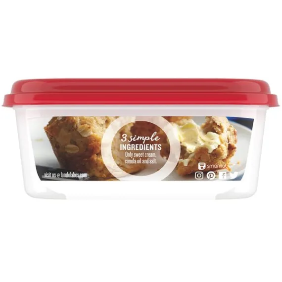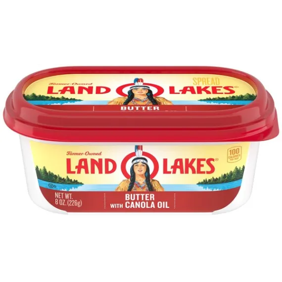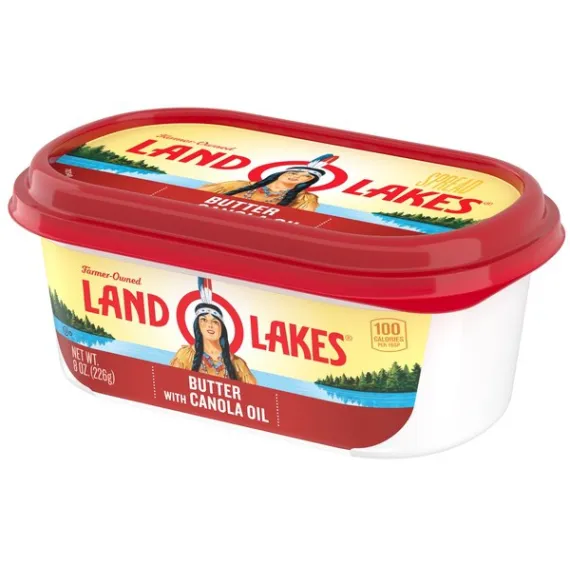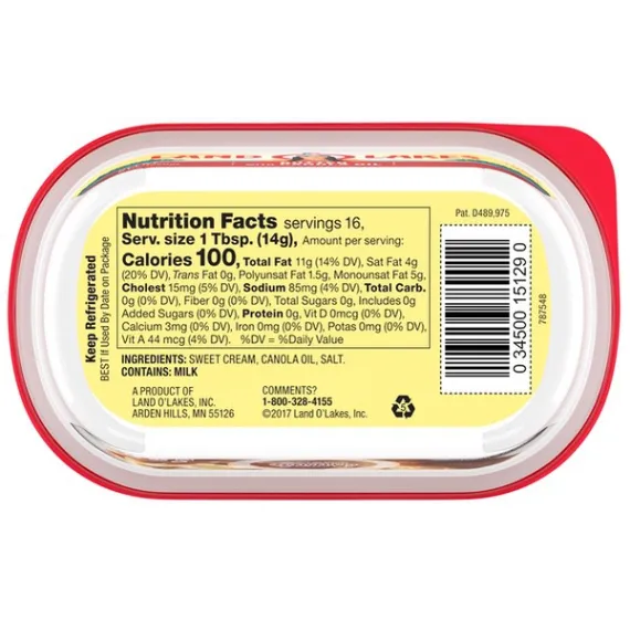 Details Ingredients Sweet Cream, Canola Oil, Salt. Product features Spread it onto warm waffles, spoon it onto steamed veggies, or use it to top a golden baked potato. Made with only sweet cream, canola oil and salt, Land O Lakes Butter with Canola Oil is made with the butter you love and has the spreadable convenience you want, right out of the refrigerator. One 8 oz container of butter with canola oil Made with only 3 simple ingredients: sweet cream, canola oil, and salt Spreadable right out of the refrigerator Great for spreading, topping, and cooking Delicious butter made easier to spread with canola oil Special Features Sweet cream Net Quantity of Content 16 X 1 Tbsp