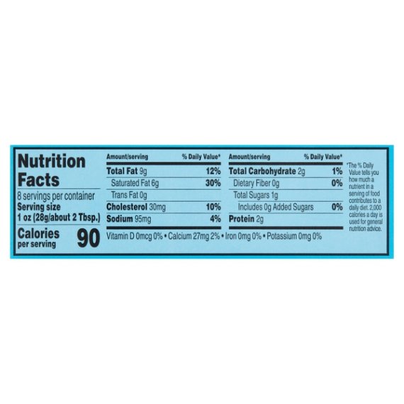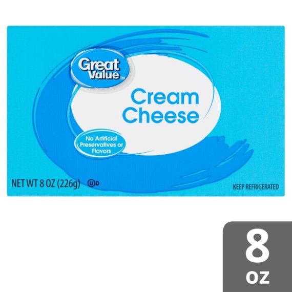 Details Ingredients PASTEURIZED MILK AND CREAM, CHEESE CULTURE, SALT, STABILIZERS (CAROB BEAN AND/OR XANTHAN AND/OR GUAR GUMS). Product features Make snack or meal time surprisingly delicious with our Great Value Cream Cheese. Try adding this delicious cheese to your homemade desserts like cheesecake, icing, cookies, or ice cream for a satisfying, creamy texture you'll love. Beyond desserts, this creamy, spreadable, and smooth cream cheese is also perfect on your veggies, bagels, favorite crackers, pasta sauces, dips, and more! Our cream cheese has no artificial preservatives or flavors, so you can have a satisfying snack you won't feel guilty about. Enjoy the delightful taste of Great Value Cream Cheese. Great Value products provide families with affordable, high quality grocery and household consumable options. With our wide range of product categories spanning grocery and household consumables, we offer you a variety of products for your family's needs. Our products are conveniently available online and in Walmart stores nationwide, allowing you to stock up and save money at the same time. Cream cheese block No artificial preservatives or flavors 90 calories per serving Kosher Gluten-free 8oz container Special Features Pasteurized Net Quantity of Content 8 X 1 oz