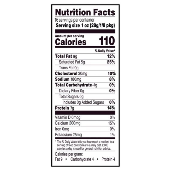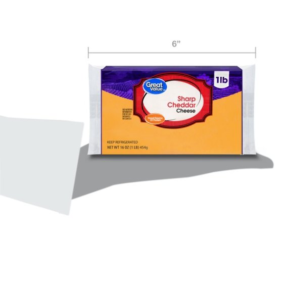 Details Ingredients PASTEURIZED MILK, CHEESE CULTURE, SALT, ENZYMES, ANNATTO COLOR. Product features Enjoy a delicious and healthy addition to any meal with Great Value Sharp Cheddar Cheese. It has no trans fat and no artificial flavors and provides a good source of calcium, 7g of protein and 110 calories per serving. This Great Value cheddar cheese is ideal as an appetizer with sliced meat and crackers, added as a topping on tacos and tasty added to dishes like macaroni and cheese. Our guarantee is our promise that you'll be fully satisfied with the taste And quality Of every great value product. If for any reason you aren't happy, we'll replace it or return your money. Whichever you prefer. All you need is the package And the receipt. It's that simple. Great quality. Great price. GUARANTEED. Great Value Sharp Cheddar Cheese, 16 oz: Rich in calcium No artificial flavors Sharp cheddar cheese Net weight: 1 lb. 0g trans fat 7g protein, 110 calories per serving 16 oz cheddar cheese for snacking, cooking and baking Special Features No artificial flavors Net Quantity of Content 16 X 1 oz