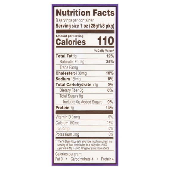 Details Ingredients PASTEURIZED MILK, CHEESE CULTURE, SALT, ENZYMES, ANNATTO COLOR. Product features Great Value Sharp Cheddar Cheese adds a classically delicious flavor to any meal. With just the right amount of crumble, this cheese is perfect atop a cobb salad or whole-grain cracker. Pair this sharp Cheddar cheese with Cabernet Sauvignon or your favorite red wine for a relaxing evening or serve this cheese with a variety of snacking nuts, fresh fruit, or jams and jellies. You can also add a slice onto your next sandwich or enjoy straight from the block. Great Value Sharp Cheddar Cheese will make for the perfect snack when hunger strikes. Great Value products provide families with affordable, high quality grocery and household consumable options. With our wide range of product categories spanning grocery and household consumables, we offer you a variety of products for your family's needs. Our products are conveniently available online and in Walmart stores nationwide, allowing you to stock up and save money at the same time. Net weight: 8oz Sharp Cheddar Good source of protein and calcium Gluten-free Net Quantity of Content 8 X 1 oz
