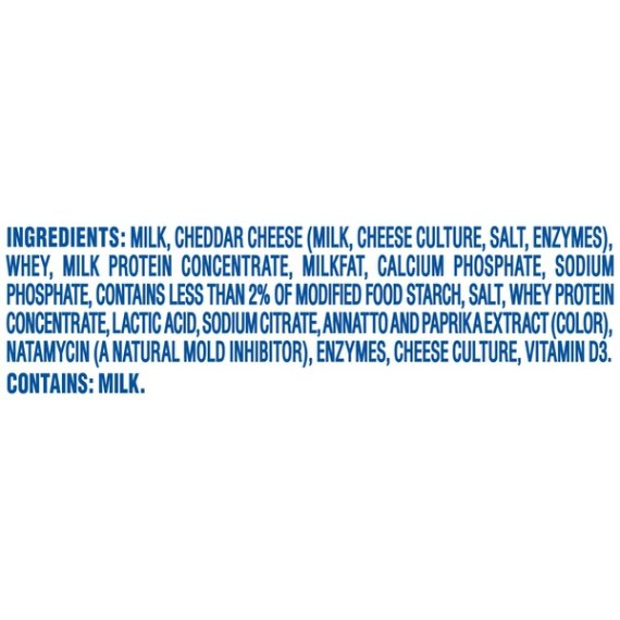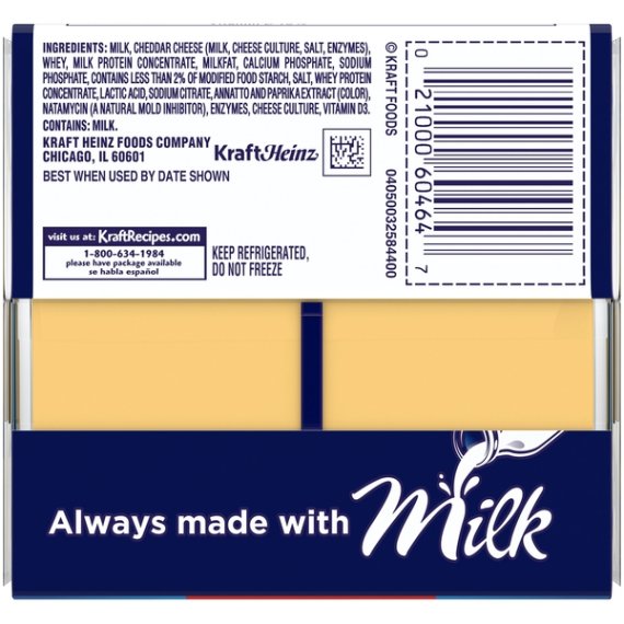 Details Ingredients Milk, Cheddar Cheese (Milk, Cheese Culture, Salt, Enzymes), Whey, Milk Protein Concentrate, Milkfat, Sodium Citrate, Contains Less Than 2% Of Calcium Phosphate, Modified Food Starch, Whey Protein Concentrate, Salt, Lactic Acid, Annatto And Paprika Extract (Color), Natamycin (A Natural Mold Inhibitor) , Enzymes, Cheese Culture, Vitamin D3. Contains: Milk Show more Product features Kraft Singles American Slices feature the melty, great taste that you love with no artificial preservatives or flavors. This sliced cheese has a smooth, creamy texture and mild flavor. Pre-sliced for your convenience, this cheese melts beautifully over hot foods or in the oven. Kraft Singles slices of American cheese are made with quality ingredients, like fresh pasteurized milk, so you can feel good about feeding them to your family. Slide a slice of this deli style cheese into a grilled cheese sandwich, or melt one on top of a juicy burger. For optimum flavor, keep this package of cheese slices refrigerated until use. One 16 pack of Kraft Singles American Slices Kraft Singles American Slices have no artificial preservatives or flavors American cheese is mild and creamy Sliced cheese cuts prep time and melts easily over hot foods Made with fresh milk for quality and consistency Use in deli sandwiches, burgers, hot dishes and more Keep refrigerated Special Features Double the calcium Net Quantity of Content 16.0 X 1 slice (21g)