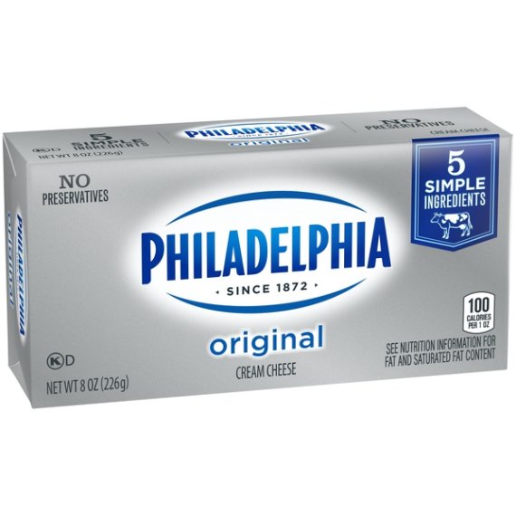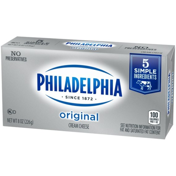 Details Ingredients Ingredients: Pasteurized Milk And Cream, Salt, Carob Bean Gum, Cheese Culture Product features Philadelphia Original Cream Cheese traces its roots back to 1872, and it has been the standard of high quality cream cheese ever since. This rich and delicious cream cheese is made with five simple ingredients, perfect for adding creaminess to any recipe. Philadelphia makes its original cream cheese without preservatives, and it's crafted from milk and real cream for an authentic taste. Use this cream cheese for bagels, no-bake desserts, pasta sauces and rich soups. Add a cream cheese frosting to homemade cakes, or whip up a yogurt and cream cheese dip to serve with fresh fruit. Each 8 ounce package of cream cheese comes sealed. One 8 oz. package of Philadelphia Original Cream Cheese Philadelphia Original Cream Cheese adds creaminess to your favorite recipes Rich and delicious cream cheese is made with five simple ingredients Made with milk and real cream Made without preservatives 100 calories per serving Cream cheese is perfect for baking, cooking or as a bagel topping Special Features Consumers prefer the taste of kraft philadelphia Net Quantity of Content 8.0 X 1 oz (28g) 1/8 package