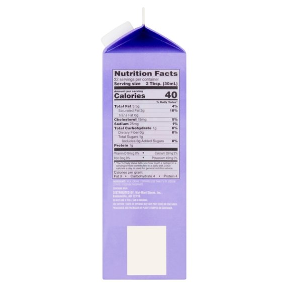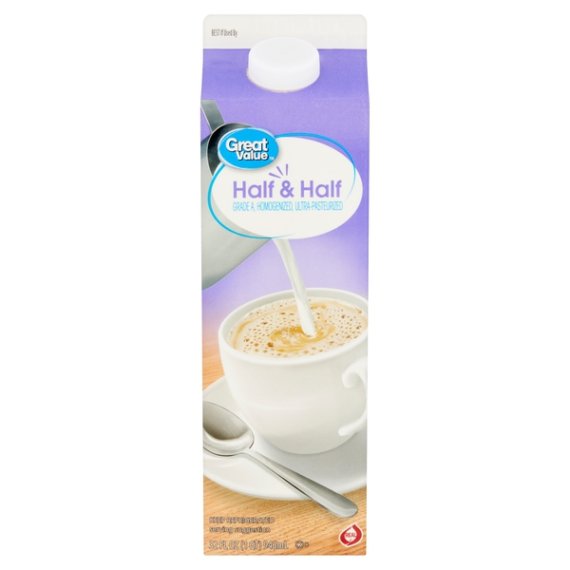 Details Ingredients ULTRA-PASTEURIZED MILK AND CREAM. Product features Make your morning coffee even more delicious with Great Value Half & Half Coffee Creamer. Our tasty coffee creamer elevates any warm beverage with fewer calories than traditional heavy cream. You can take comfort in knowing our Grade A coffee creamer has earned the REAL® Seal, assuring you are buying a genuine dairy product. Get creative in the kitchen by adding some of our half and half to mashed potatoes, scrambled eggs, or baked goods. You can even use it to make creamier smoothies or milkshakes. With only 40 tiny calories per serving, you can afford to indulge. Enjoy rich and creamy delight in every cup when you add Great Value Half & Half Coffee Creamer. Great Value products provide families with affordable, high quality grocery and household consumable options. With our wide range of product categories spanning grocery and household consumables, we offer you a variety of products for your family's needs. Our products are conveniently available online and in Walmart stores nationwide, allowing you to stock up and save money at the same time. Coffee creamer Grade A Homogenized Ultra-pasteurized 40 calories per serving 32fl oz container Special Features Ultra-pasteurized Net Quantity of Content ABOUT 32 X 2 Tbsp