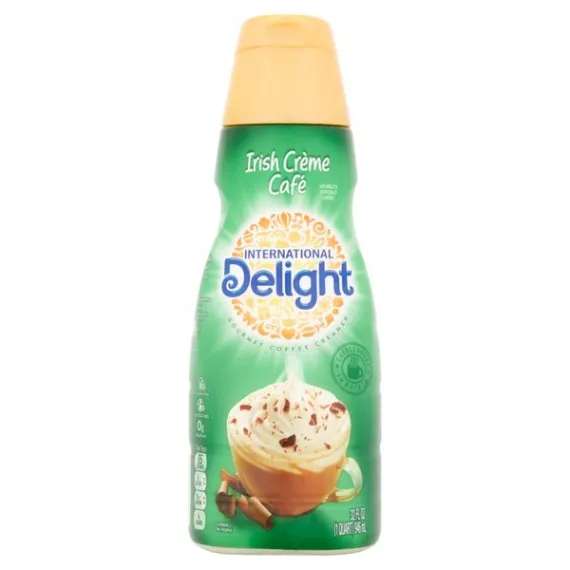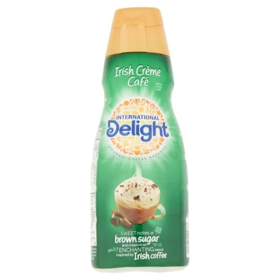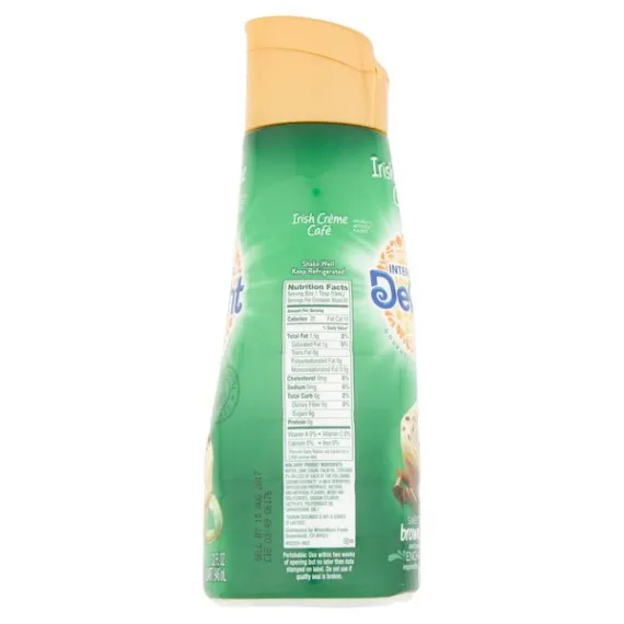 Details Ingredients Non-Dairy Product Water, Cane Sugar, Palm Oil, contains 2% or less of each of the following: Sodium Caseinate* (A Milk Derivative), Dipotassium Phosphate, Natural and Artificial Flavors, Mono and Diglycerides, Sodium Stearoyl Lactylate, Polysorbate 60, Carrageenan, Salt. Show more Product features International Delight Irish Creme Cafe Coffee Creamer has sweet notes of brown sugar and cream in an enchanting blend inspired by Irish coffee. International Delight Irish Creme Cafe Gourmet Coffee Creamer: Non-Dairy 0g trans fat Lactose free Gluten free Kosher Special Features No trans fat Net Quantity of Content 63 X 1 Tbsp