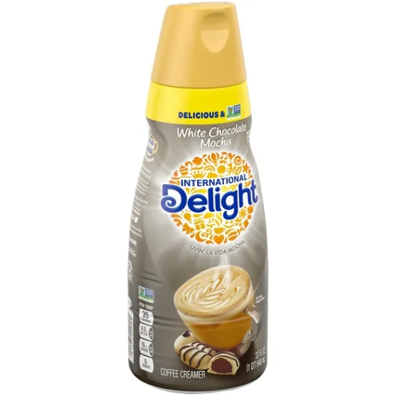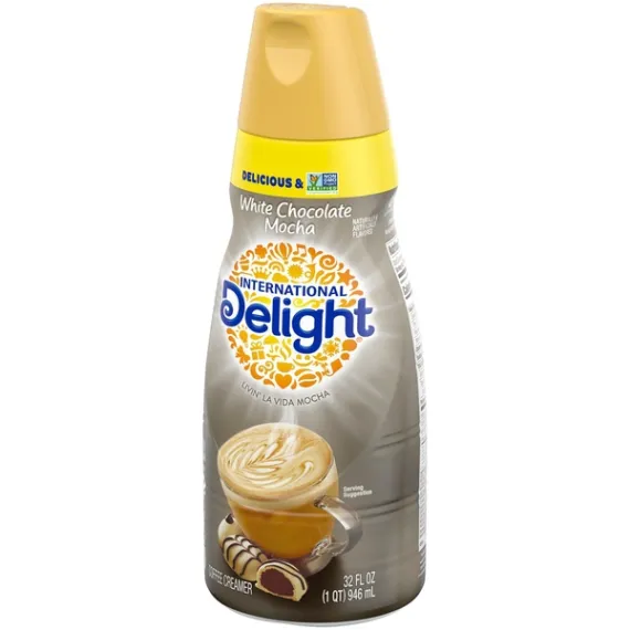 Details Ingredients Non-Dairy Product Water, Cane Sugar, Palm Oil, contains 2% or less of each of the following: Sodium Caseinate (A Milk Derivative)*, Dipotassium Phosphate, Natural and Artificial Flavors, Mono and Diglycerides, Sodium Stearoyl Lactylate, Polysorbate 60, Carrageenan, Salt. Show more Product features International Delight White Chocolate Mocha Non-Dairy Coffee Creamer 32oz. has a delectable swirl of rich and creamy smooth white chocolate flavor. So smooth and white Chocolaty, you'll never say "when". Livin' La Vida Mocha International Delight White Chocolate Mocha Coffee Creamer: Non-Dairy 0g trans fat Lactose free Gluten free Kosher Non GMO Non Dairy Creamer Net Quantity of Content 63 X 1 Tbsp