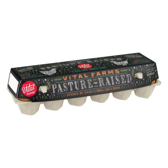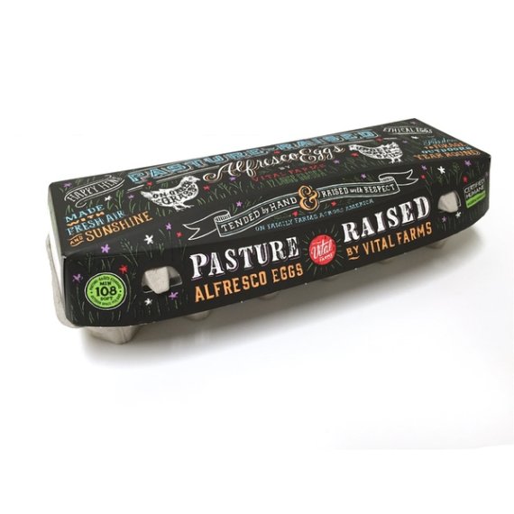 Details    Ingredients  Eggs.       Product features   All our eggs come from pasture-raised hens. We start with natural pastures – pastures which are never treated with herbicides, pesticides or artificial fertilizers – and regularly rotate them to keep them fresh and healthy. Of course, the natural fertilizer the ladies leave behind certainly helps!      The girls are free to roam and forage as much as they like – we open the barn doors in the morning, and out they all go! We make sure there’s plenty of shade out on the pastures, and a ready supply of both clean, fresh water and our carefully formulated supplemental feed, but they’re free to come and go from the barn, and free to eat what they want, all day long.      Vital Farms eggs are simply better in every way. They taste better. They look better. They’re better for you. And the hens that lay them live happy, healthy lives as close to natural as is possible for domesticated animals.        Alfresco Pasture Raised Large Brown Grade A Eggs, 12 Count          Minimum of 108sqft of pasture per hen to roam.       Freedom to forage outdoors year round.       Tended by hand on small family farms.       Made with fresh air and sunshine.       No herbicides or pesticides.         Net Quantity of Content   12 X 50.00 g