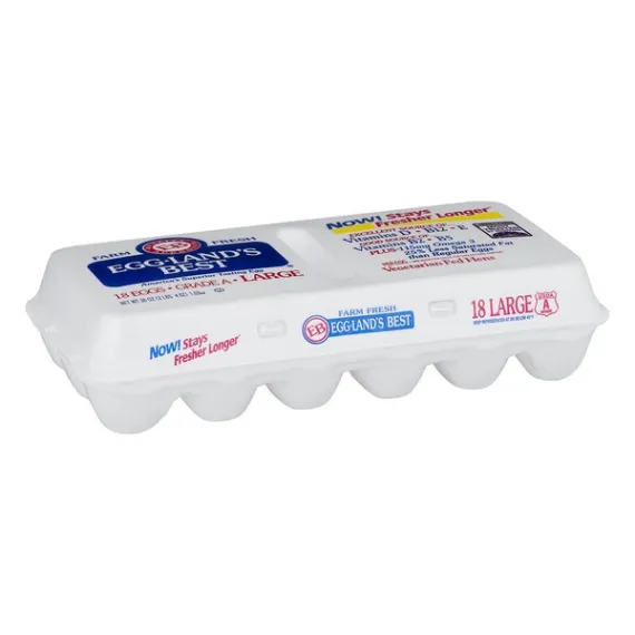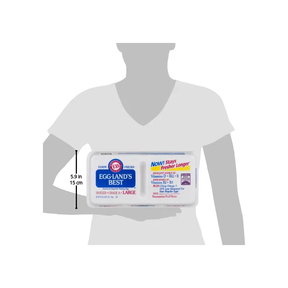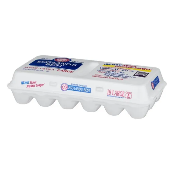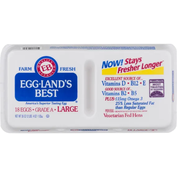 Details Product features Eggland's Best® Grade A Eggs Large. From vegetarian fed hens. These are are an excellent source of vitamin D, vitamin B12 and vitamin E, and also a good source of vitamin B2 (riboflavin), vitamin B5 (pantothenic acid) and folate. Plus, our eggs contain 115 mg of omega 3 fatty acids and 200 mcg of lutein and have 25% less saturated fat than regular eggs. USDA organic. Eggland's Best Grade A Large Eggs, 18 ct Net Quantity of Content 18 X 50 g