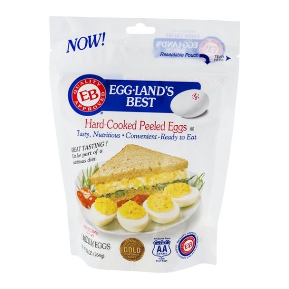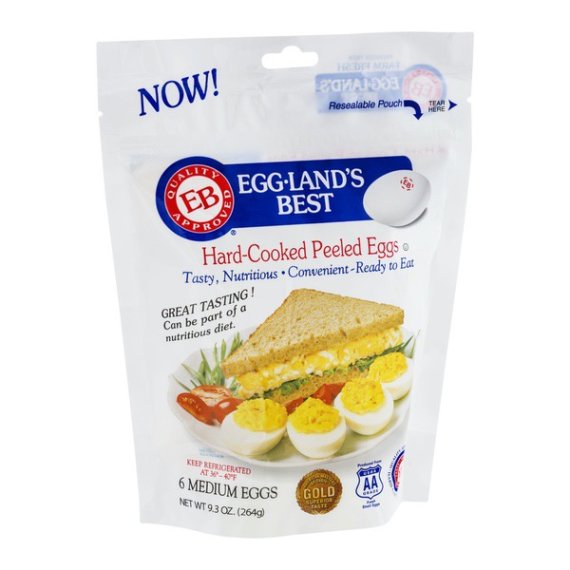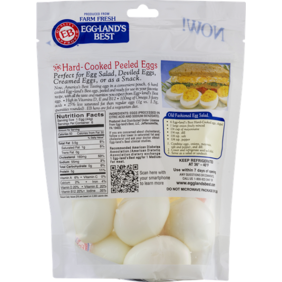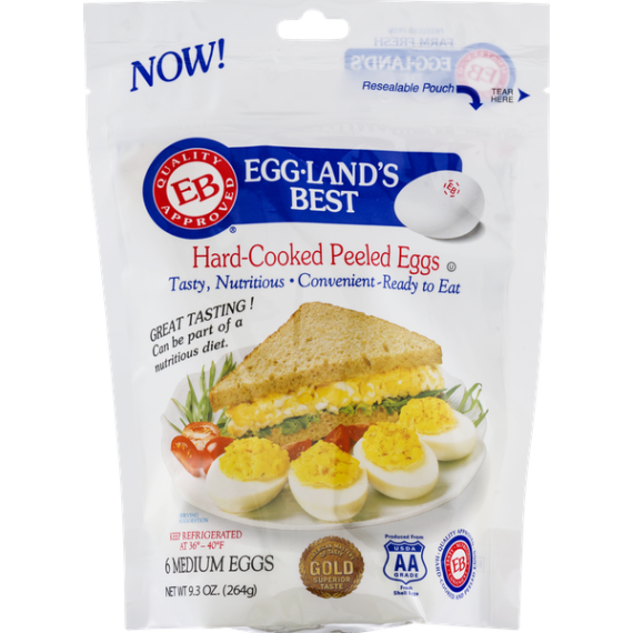 Details    Ingredients  Eggs (Processed in Citric Acid and Sodium Benzoate).       Product features   Egg-Land's Best ready-to-eat Hard-Cooked Peeled eggs pack the same great taste as EB shell eggs and are super convenient.        Egg-Land's Best Farm Fresh Medium Grade A White Hard Cooked Eggs, 6 Count          All the same great nutrition plus the convenience of not having to hard boil eggs yourself.       No Cooking, peeling, or clean up needed.       Ideal for egg salad, deviled eggs, or a quick snack.         Special Features  Grade AA    Net Quantity of Content   6.0 X 44 g