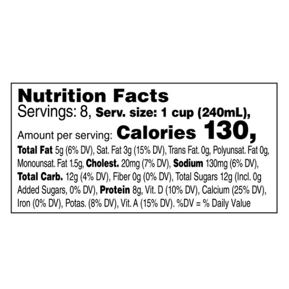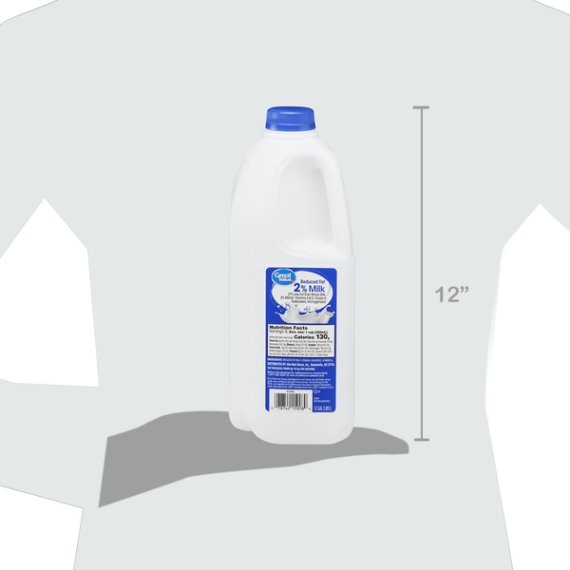 Details Ingredients REDUCED FAT MILK, VITAMIN A PALMITATE, VITAMIN D3. Product features Enjoy the wholesome goodness of Great Value Reduced Fat 2% Milk at any time. This Grade A quality milk is pasteurized and delivers fresh from the farm taste. This kitchen staple is great for using in cereal, to bake desserts and more. This gallon of milk is also wonderful for milkshakes, smoothies, chocolate milk and more. Enjoy a delicious classic and serve a cold glass of this milk with soft, chocolate chip cookies for dipping. It offers an abundance of nutritional benefits as it is a rich source of protein, calcium, potassium and vitamins A and D. It is great for health conscious individuals as it has 37% less fat compared to whole milk. Our farms have pledged to not treat any cows with any artificial growth hormones. Great Value products provide families with affordable, high quality grocery and household consumable options. With our wide range of product categories spanning grocery and household consumables, we offer you a variety of products for your family's needs. Our products are conveniently available online and in Walmart stores nationwide, allowing you to stock up and save money at the same time. Added vitamins A and D 37% less fat than whole milk Grade A Pasteurized Homogenized Excellent source of protein and calcium Special Features Homogenized Net Quantity of Content 8 X 1 cup