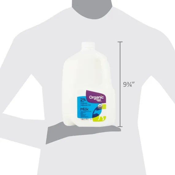 Details Ingredients ORGANIC GRADE A REDUCED FAT MILK, VITAMIN A PALMITATE, VITAMIN D3. Product features Offer your family a healthy beverage with Great Value Organic Reduced Fat Milk. Our milk is USDA-certified organic, ultra-pasteurized, gluten-free, and contains 37% less fat than traditional vitamin D milk, making this drink a great choice for people who are being careful with their diet. Mix with fruit to blend into smoothies for a satisfying, nutritious snack that's fast and easy to make. If you are craving a creamy, nutritious beverage, do your diet and your taste buds a favor with a glass of Great Value Organic Reduced Fat Milk. Great Value Organic offers a wide-range of USDA certified organic foods that are hand-selected to meet our high standards as well as yours. We use wholesome ingredients without artificial flavors or preservatives to deliver great food you can trust at an affordable price. Fill your table with organic foods your family deserves without draining your budget. Organic reduced fat milk Gluten-free and USDA organic certified Fat reduced from 8g to 5g per serving 37% less fat than vitamin D milk Vitamin A and D, grade A, ultra-pasteurized, homogenized 1 gallon (3.78L) Net Quantity of Content 16 X 1 cup