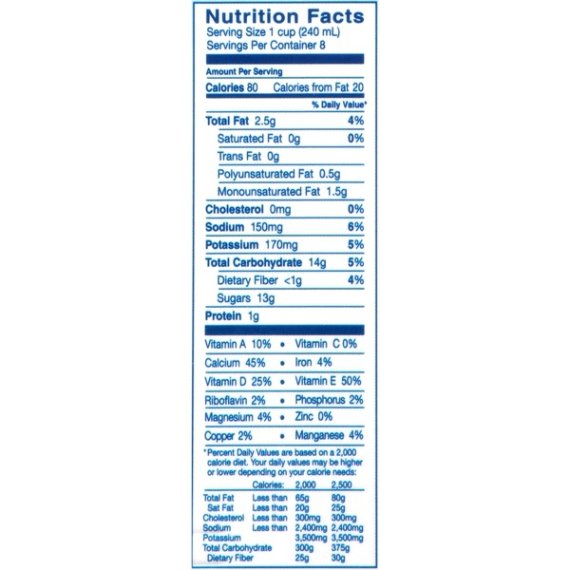 Details Ingredients ALMONDMILK (FILTERED WATER, ALMONDS), CANE SUGAR, CALCIUM CARBONATE, NATURAL FLAVORS, SEA SALT, POTASSIUM CITRATE, SUNFLOWER LECITHIN, GELLAN GUM, VITAMIN A PALMITATE, VITAMIN D2, D-ALPHA-TOCOPHEROL (NATURAL VITAMIN E). Show more Product features Almond Breeze® is a delicious way to be good to yourself! Made with real California almonds, Almond Breeze® is a tasty, creamy alternative to dairy or soymilk. It's free of lactose, cholesterol, peanuts, casein, gluten, eggs, saturated fat and MSG. Almond Breeze® – The Best Almonds Make The Best Almondmilk Blue Diamond Almond Breeze Natural Vanilla Almond Milk Made with real almonds Fortified with calcium and vitamins A, D, and E Luscious taste, smart choice Almond Breeze is a delightful and delicious non-dairy beverage without the thin, chalky aftertaste of rice and soy beverages. Special Features Made with real almonds Net Quantity of Content 8 X 1 cup