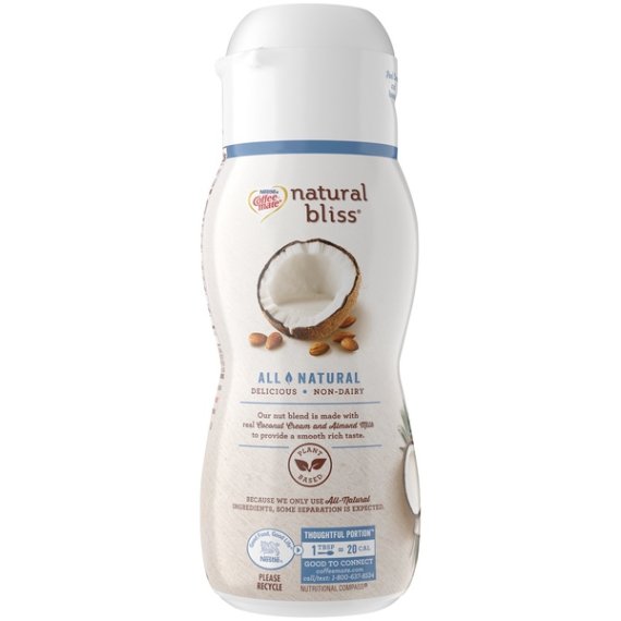 Details Ingredients Coconut Milk (Water, Coconut Cream), Almond Milk (Water, Almonds), Cane Sugar, Coconut Oil, Lemon Juice from Concentrate, Pea Protein, Baking Soda, Natural Flavor, Gellan Gum, Guar Gum (from the Guar Plant). Show more Product features Coffee mate natural bliss® Vanilla Plant Based Half and Half brings a rich, delicious vanilla flavor to your morning cup. It’s made with real almond milk, coconut cream, cane sugar, and natural vanilla flavor that includes extracts from real Madagascar vanilla beans. And GMO ingredients? Not in this plant based half and half. natural bliss® Vanilla Plant Based Half and Half transforms your every cup into a rich and creamy vanilla experience that’s simply beyond compare. Because we only use all-natural ingredients, some separation is expected Made with real almond milk and coconut cream to create the perfect balance of creamy and delicious Only 2g of sugar per serving Creamier than plant-based milks All- natural plant based half and half No artificial ingredients No GMO ingredients Net Quantity of Content 32.0 X 1 Tbsp. (15mL)