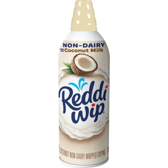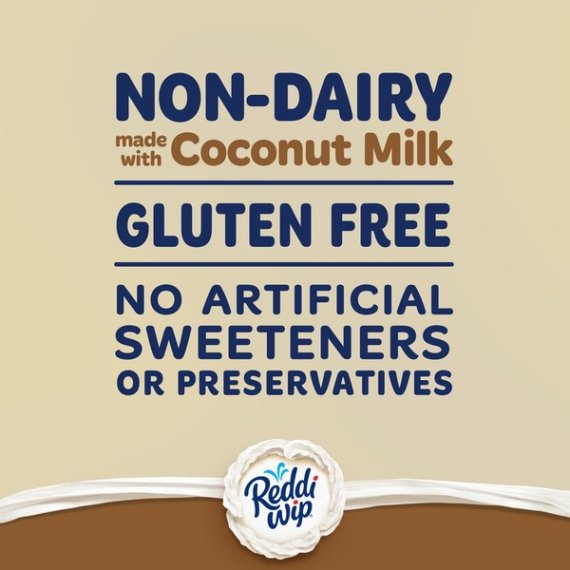 Details Ingredients Coconut Milk (Coconut Cream, Water), Sugar, Maltodextrin, Mono- and Diglycerides, Natural Flavor, Carrageenan. Propellant: Nitrous Oxide. CONTAINS: TREE NUTS (COCONUTS). Show more Product features Reddi-wip Non-Dairy Made with Coconut Milk is a deliciously creamy whipped topping for everyone, and especially for those who are looking for a vegan or dairy-free option. With no artificial sweeteners or preservatives, this treat is a perfect gluten-free whipped cream alternative to top your favorite fruit, coffee, hot cocoa, or desserts. Enjoy a guilt-free indulgence with 10 calories per serving. Add some real creamy goodness, and savor every bite. Contains one 6-ounce can of Reddi-wip Non-Dairy Made with Coconut Milk Vegan Whipped Topping Indulge in this deliciously creamy non-dairy whipped-cream alternative A perfect topping to your favorite fruit, coffee, hot cocoa or dessert A gluten-free treat that's made with real coconut milk 10 calories per serving for a tasty guilt-free indulgence No artificial sweeteners or preservatives Net Quantity of Content 34.0 X 5g