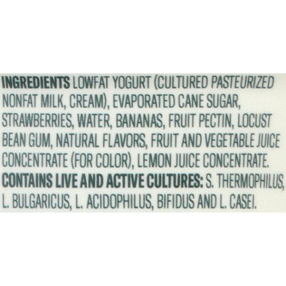 Details Ingredients Lowfat Yogurt (Cultured Pasteurized Nonfat Milk, Cream), Evaporated Cane Sugar, Strawberries, Water, Bananas, Fruit Pectin, Locust Bean Gum, Natural Flavors, Fruit and Vegetable Juice Concentrate(For Color), Lemon Juice Concentrate. Show more Product features For an all-natural start to your morning look no further than Chobani Greek Yogurt Fruit on the Bottom. Good recipes come from loving kitchens, and this product uses natural, non-GMO ingredients. Choose strawberry banana Chobani Greek yogurt for an easy, on-the-go meal which is both delicious and nutritious. The tasty snack is high in protein and is available in a 5.3-oz container. With 40 percent less sugar than other yogurt, Chobani Greek Yogurt Fruit on the Bottom is a healthy breakfast alternative. Chobani Greek Yogurt, Strawberry Banana, Fruit on the Bottom, Low-Fat Yogurt, 5.3 oz: Only natural non-GMO ingredients used in production 40% less sugar than regular yogurt 2% milkfat Low-fat yogurt is full of probiotics Weight: 5.3 oz Ideal for breakfast, snacks and on the go Net Quantity of Content 1 X 150 g