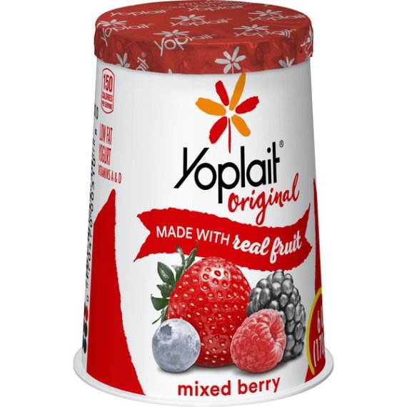 Details       Ingredients  Cultured Pasteurized Grade A Reduced Fat Milk, Sugar, Blueberries, Modified Corn Starch, Raspberries, Strawberries, Blackberries, Kosher Gelatin, Pectin, Natural Flavor, Vitamin A Acetate, Vitamin D3.      Show more      Product features   Yoplait Original Mixed Berry flavor is a smooth, creamy delicious yogurt with no high fructose corn syrup and no colors or flavors from artificial sources. A gluten free option that is perfect for breakfast or snack.   Thanks for choosing this specifically crafted tub of Yoplait! Since 1965, we’ve been making sure every spoonful of Yoplait is always smooth, creamy and delicious. So grab your spoon and dive right in – we hope you and your family enjoy every bite!      Yoplait Original: Creamy original mixed berry yogurt for the perfect breakfast on the go or afternoon snack.   Made With Goodness: Mixed berry yogurt contains no artificial flavors, no high fructose corn syrup and no colors from artificial sources.   Protein Packed: Yoplait yogurt is packed with 6g of protein per serving.   Low Calorie: Low fat yogurt has 150 calories per serving and the same smooth, delicious Yoplait taste.   Explore all our Yoplait varieties and flavors       Special Features  Vitamins a and d    Net Quantity of Content   1 X 170.0