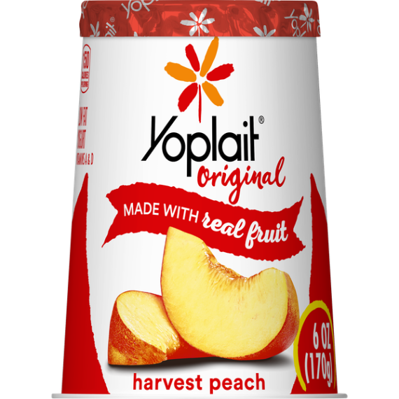 Details       Ingredients  Cultured Pasteurized Grade A Reduced Fat Milk, Sugar, Peaches, Modified Corn Starch, Kosher Gelatin, Natural Flavor, Pectin, Colored With Annatto Extract, Vitamin A Acetate, Vitamin D3.      Show more      Product features   You can't beat an original, especially when it's as smooth, creamy and delicious as Yoplait. It's Low Fat, Gluten Free and has No High Fructose Corn Syrup, No Artificial Flavors or No Colors From Artificial Sources.   Thanks for choosing this specifically crafted tub of Yoplait! Since 1965, we’ve been making sure every spoonful of Yoplait is always smooth, creamy and delicious. So grab your spoon and dive right in – we hope you and your family enjoy every bite!      Yoplait Original: Creamy original peach yogurt for the perfect breakfast on the go or afternoon snack.   Made With Goodness: Harvest peach yogurt contains no artificial flavors, no high fructose corn syrup and no colors from artificial sources.   Protein Packed: Yoplait yogurt is packed with 6g of protein per serving.   Low Calorie: Low fat yogurt has 150 calories per serving and the same smooth, delicious Yoplait taste.   Explore all our Yoplait varieties and flavors       Special Features  99% fat free    Net Quantity of Content   1 X 1 container
