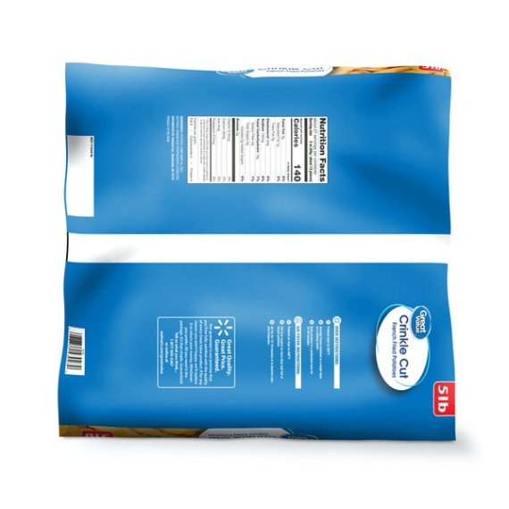 Details Ingredients Potatoes, Vegetable Oil (Contains One or More of the Following: Canola Oil, Corn Oil, Cottonseed Oil, Palm Oil, Soybean Oil, Sunflower Oil), Salt, Disodium Dihydrogen Pyrophosphate (to Promote Color Retention), Coloring (Caramel Color, Annatto Extract, Turmeric), Dextrose. Show more Product features Serve up a crisp side dish with these Great Value Crinkle Cut French Fried Potatoes. These savory fries are the perfect addition to your day. Serve them with grilled chicken, steak, and vegetables for a wholesome dinner. Or you could serve them with a cheeseburger or chicken fingers for a quick, delicious lunch. These fries make a great snack or side for any meal and your family is sure to enjoy them. They are also great to make for a crowd during parties, barbecues or while watching the big game. For an easy and delicious side, try Great Value Crinkle Cut French Fried Potatoes. Great Value products provide families with affordable, high-quality grocery and household consumable options. With our wide range of product categories spanning grocery and household consumables, we offer you a variety of products for your family's needs. Our products are conveniently available online and in Walmart stores nationwide, allowing you to stock up and save money at the same time. Great Value Crinkle Cut French Fried Potatoes, 80 oz: Crispy and delicious Bake or fry Great with burgers or hot dogs About 27 servings per package Special Features No trans fat Net Quantity of Content 27 X 84