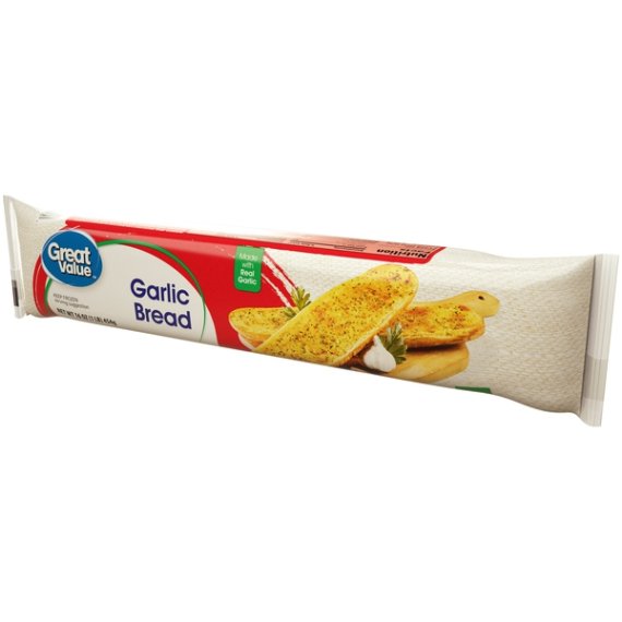 Details Ingredients Bread, Enriched Wheat Flour (Wheat Flour, Malted Barley Flour, Niacin, Iron, Thiamine Mononitrate, Riboflavin, Folic Acid), Water, Contains 2% or less of Yeast Salt, Dextrose, Dough Conditioners (DATEM, Calcium Sulfate, Ascorbic Acid, Potassium Iodate, Enzymes, L-Cysteine), Soybean Oil, Sugar, Cornstarch, Mono- and Diglycerides, Cornmeal, Spread: Soybean Oil, Water, Palm Oil, Dried Garlic, Salt, Mono- and Diglycerides, Citric Acid, Natural Flavor, Artificial Flavor, Whey (From Milk), Autolyzed Yeast Extract, Beta Carotene (Color), Whey (From Milk) Show more Product features Garlic Bread Product Features Made with real garlic walmart.com/greatvalue Special Features Made with real garlic Net Quantity of Content 8 X 57 G