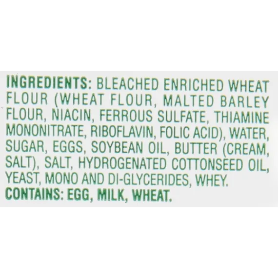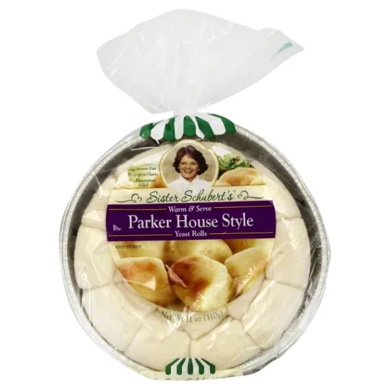 Details Ingredients BLEACHED ENRICHED WHEAT FLOUR (WHEAT FLOUR, MALTED BARLEY FLOUR, NIACIN, FERROUS SULFATE, THIAMINE MONONITRATE, RIBOFLAVIN, FOLIC ACID), WATER, SUGAR, EGGS, SOYBEAN OIL, BUTTER (CREAM, SALT), SALT, HYDROGENATED COTTONSEED OIL, YEAST, MONO AND DI-GLYCERIDES, WHEY. Show more Product features Rolls, Yeast, Parker House Style, Bag 11 OZ 0 g trans fat. No artificial flavors. No preservatives added. Never compromise the ingredients! - Sister Schubert, Founder. Sister Schubert began making rolls in her own kitchen for her church's holiday festival. The rolls were so popular, Sister began selling them to grocery stores so everyone could enjoy them and Sister Schubert's Homemade Rolls were born. Sister bakes her delicious rolls using the finest ingredients and no preservatives and then freezes them fresh. All you have to do is heat, serve and savor the homemade taste - pure and simple. For more information, please visit our website: www.sisterschuberts.com. Made in USA. Keep frozen. We recommend heating in a conventional oven. If You Have Time to Thaw: Allow rolls to thaw completely in plastic bag. Preheat oven to 350 degrees F. Remove plastic bag and cover loosely with aluminum foil. Place on middle rack of oven for 15-20 minutes or until desired browning has occurred on top and bottom. If You Are Preparing from Frozen: Preheat oven to 300 degrees F. Remove plastic bag and cover loosely with aluminum foil. Place on middle rack of oven for 25-35 minutes or until desired browning has occurred on top and bottom. To serve 2-4 rolls, break off desired number of rolls. Heat in preheated oven at 350 degrees F for 8-10 minutes or until desired browning has occurred. Contains: egg, milk, wheat. 11 oz (310 g) Columbus, OH 43229 T. Marzetti Co. Yeast Rolls, Parker House Style 0 g trans fat. No artificial flavors. No preservatives added. Never compromise the ingredients! - Sister Schubert, Founder. Sister Schubert began making rolls in her own kitchen for her church's holiday festival. The rolls were so popular, Sister began selling them to grocery stores so everyone could enjoy them and Sister Schubert's Homemade Rolls were born. Sister bakes her delicious rolls using the finest ingredients and no preservatives and then freezes them fresh. All you have to do is heat, serve and savor the homemade taste - pure and simple. For more information, please visit our website: www.sisterschuberts.com. Made in USA. Special Features 0 grams of trans fat Net Quantity of Content 8 X 41 g