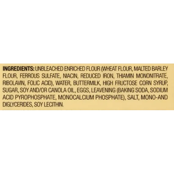 Details Ingredients UNBLEACHED ENRICHED FLOUR (WHEAT FLOUR, MALTED BARLEY FLOUR, FERROUS SULFATE, NIACIN, REDUCED IRON, THIAMIN MONONITRATE, RIBOFLAVIN, FOLIC ACID), WATER BUTTERMILK, HIGH FRUCTOSE CORN SYRUP, SUGAR, SOY AND/OR CANOLA OIL, EGGS, LEAVENING (BAKING SODA, SODIUM ACID PYROSPHATE, MONOCALCIUM PHOSPHATE), SALT, MONO-AND DIGLYCERIDES, SOY LECITHIN. VITAMINS AND MINERALS: DICALCIUM PHOSPHATE, VITAMIN A PALMITATE, NIACINAMIDE (VITAMIN B3), REDUCED IRON, PYRIDOXINE HYDROCHLORIDE (VITAMIN B6), THIAMIN HYDROCHLORIDE (VITAMIN B1), RIBOFLAVIN (VITAMIN B2), CYANOCOBALAMINE (VITAMIN B12). Show more Product features De Wafelbakkers Buttermilk Pancakes are a delicious way to start the day. The servings are individually wrapped for freshness and they are easy to prepare, making them ideal for busy mornings. De Wafelbakkers pancakes are free of preservatives and trans fan. They're fully baked and can be microwaved in just seconds. These pancakes are made with wholesome ingredients. They have a fluffy texture and fresh flavor. De Wafelbakkers DWF Buttermilk Pancakes: No preservatives, trans fat or additives Kosher D Fully baked Rich in vitamins 24-count pack of frozen buttermilk pancakes Homemade flavor and fluffy texture Quality and flavor guaranteed Microwave in seconds Servings individually wrapped for freshness Made with wholesome ingredients Special Features Microwaveable Net Quantity of Content 8 X 117 g