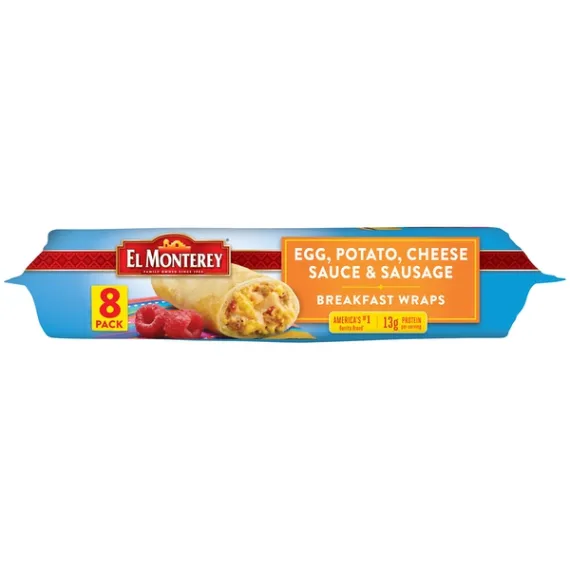El Monterey Egg, Potato, Cheese Sauce & Sausage Breakfast Wraps (8CT)