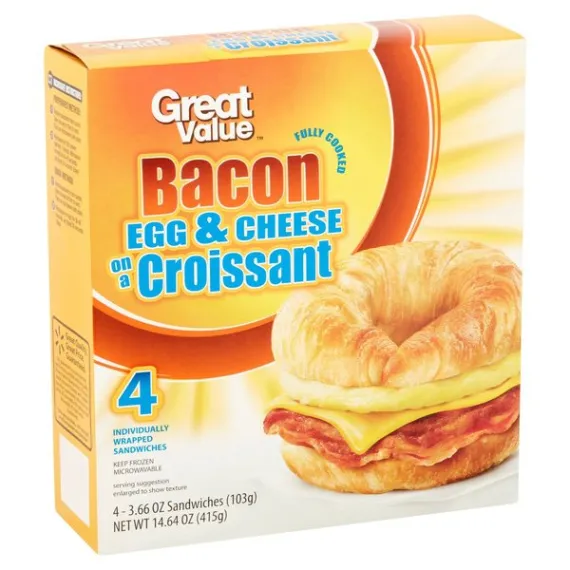 Great Value Fully Cooked Bacon Egg & Cheese on a Croissant Sandwiches, 3.66 oz, 4 Count