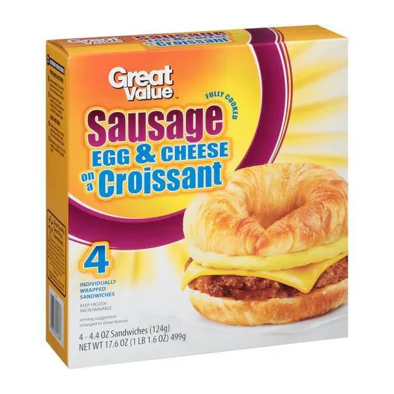 Great Value Sausage, Egg & Cheese on a Croissant, 4.4 oz, 4 Count