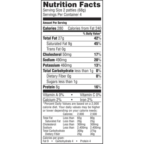 Details Ingredients PORK, WATER, CONTAINS 2% OR LESS: POTASSIUM LACTATE, SALT, SPICES, SUGAR, SODIUM PHOSPHATES, DEXTROSE, MONOSODIUM GLUTAMATE, SODIUM DIACETATE, CARAMEL COLOR. Show more Product features Celebrate the day and the delightful taste of Jimmy Dean® Fully Cooked Original Pork Sausage Patties. Made with premium pork, seasoned to perfection with our signature blend of spices, these savory sausage patties have 11 grams of protein per serving to give you more fuel to power your day. Simple to prepare and ready in minutes, just microwave and serve with eggs and toast for a traditional breakfast or with biscuits and gravy for brunch. Includes one package of 8 patties. Can breakfast sausage make the world a brighter place? At Jimmy Dean®, we believe that when you have a good breakfast, you have a good day. When you have a good day, you pass that shine onto others. To us, the sun is always shining in the morning. So let's do it. Let's make the world a better place, one breakfast at a time. One package of 8 Original Pork Sausage PattiesFully cooked sausage made with premium porkSeasoned to perfection with our signature blend of spicesGood source of protein - 11 grams per servingSimply microwave and serveDelicious addition to any mealMicrowave and serve with eggs and toast for a traditional breakfast or with biscuits and gravy for brunch Special Features 2 stay fresh packages Net Quantity of Content 4 X 68 g