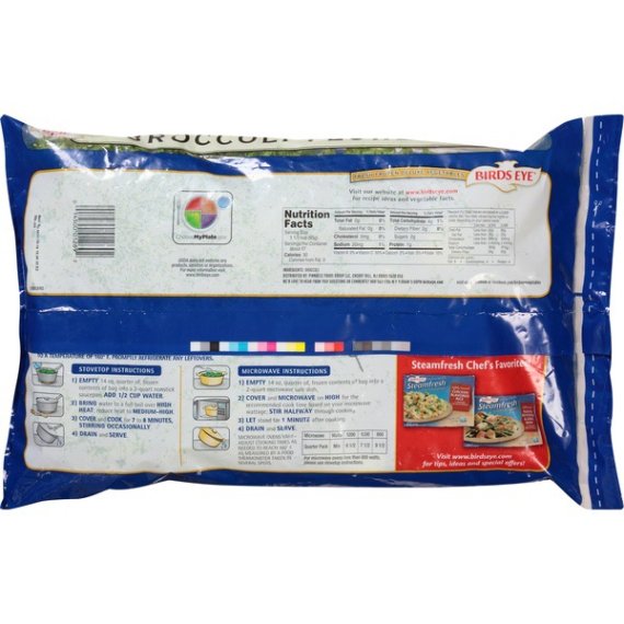 Details Ingredients BROCCOLI. Product features For each purchase of participating Birds Eye products from April 2 - April 30, 2018, Pinnacle Foods Group will donate the monetary equivalent of at least 1 meal to Feeding America®. Guaranteed minimum donation: $100,000. Maximum donation: $200,000. $1 helps provide at least 10 meals secured by Feeding America on behalf of local food banks. Visit Walmart.com/FightHunger for details. Specially selected tender, young broccoli florets. Broccoli Florets Specially selected tender, young broccoli florets. Fresh frozen deluxe vegetables. No preservatives. ChooseMyPlate.gov. USDA does not endorse any products, services or organizations. For more information visit www.birdseye.com. Visit our website at www.birdseye.com for recipe ideas and vegetable facts. Questions or comments? 1-888-327-9060 M-F 9:00AM - 5:00PM EST. For more recipes, ideas and inspiration, visit: www.birdseye.com. Try our delicious Steamfresh Chef's Favorites! Visit www.birdseye.com for tips, ideas and special offers! Special Features Heart healthy Net Quantity of Content 17 X 1.33 cup